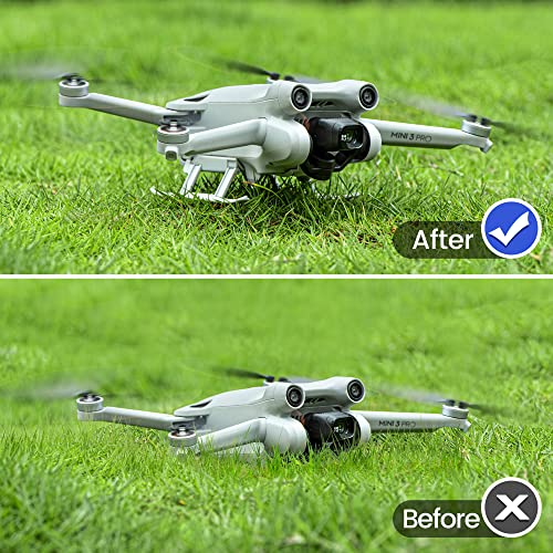 • 【Effective Protection】This Mini 3 Pro landing gear can effectively increase the distance between the drone and the ground by 21mm. When the Mini 3 Pro takes off or lands on uneven ground, it can reduce the impact, make the drone land smoothly, and protect the Mini 3 Pro’s body and gimbal camera to prevent damage.