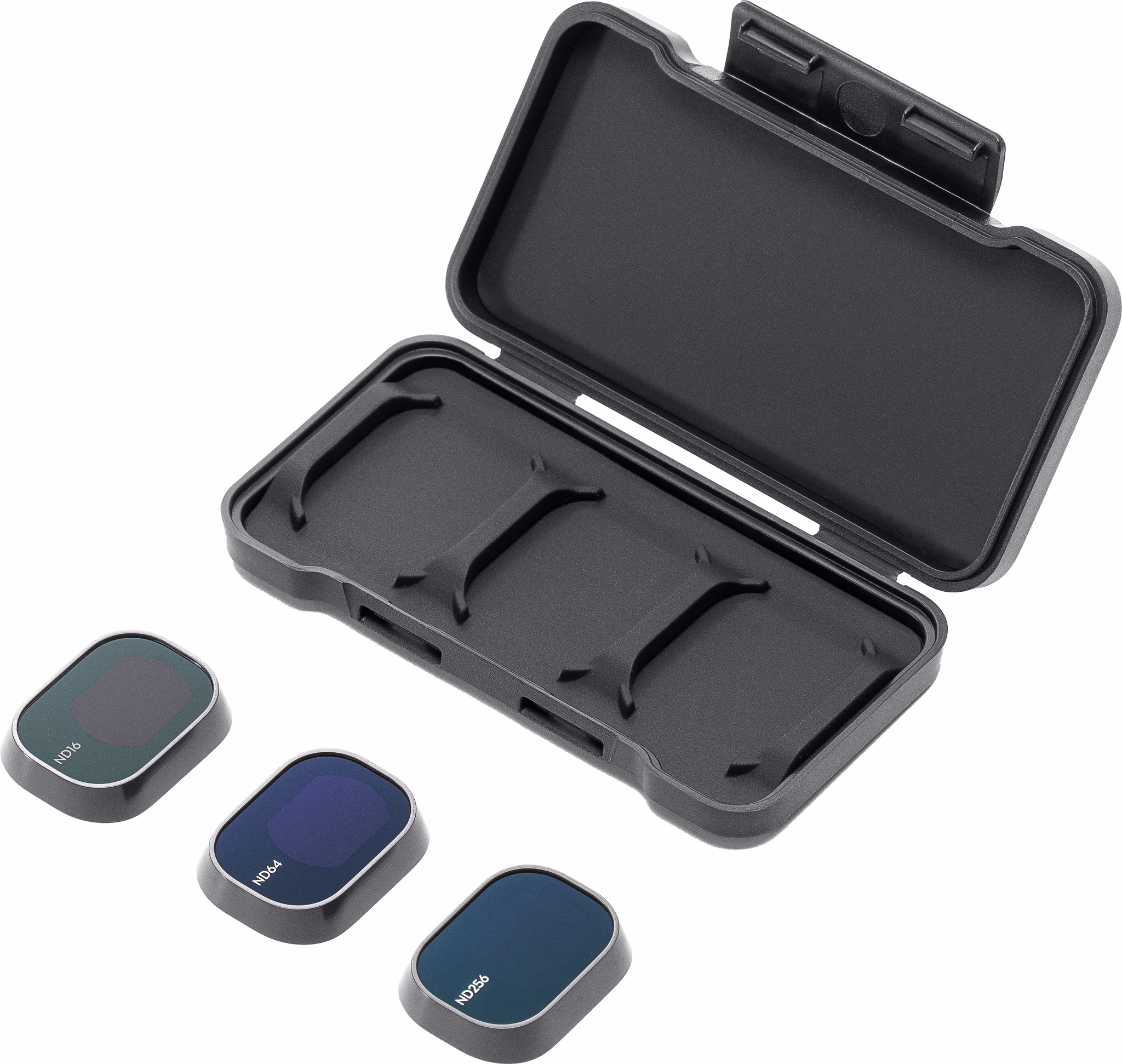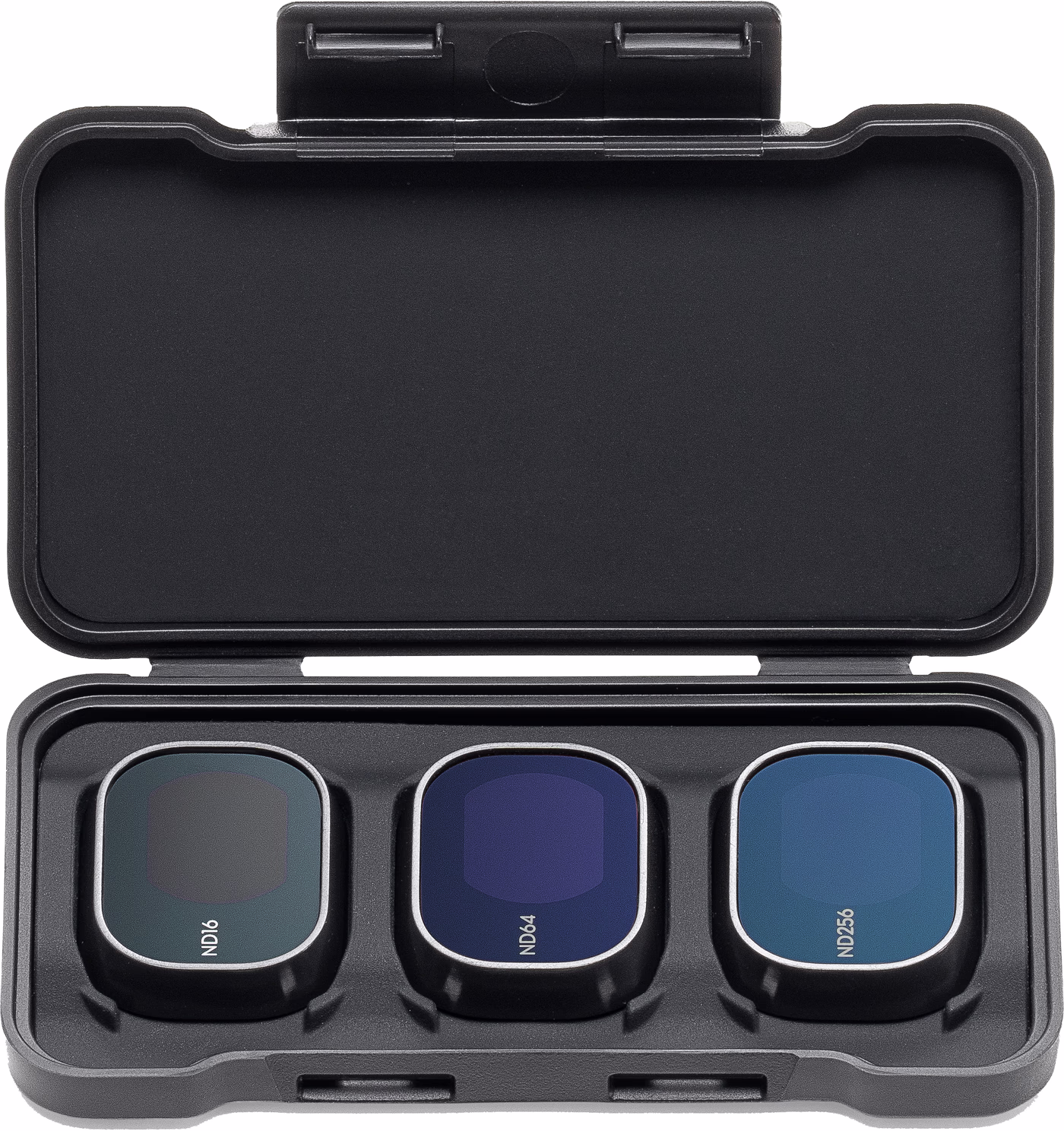The DJI Mini 4 Pro ND Filters Set (ND16/64/256) gray filters reduce the amount of light that falls into your lens of your DJI Min i4 Pro. This reduces overexposed recordings. They block 4, 6, or 8-stops light, so you can use slower shutter speeds. That’s useful when you’re recording on sunny days or during winter sports. You can easily click these filters onto the camera of the drone, so they’re firmly in place while you fly.