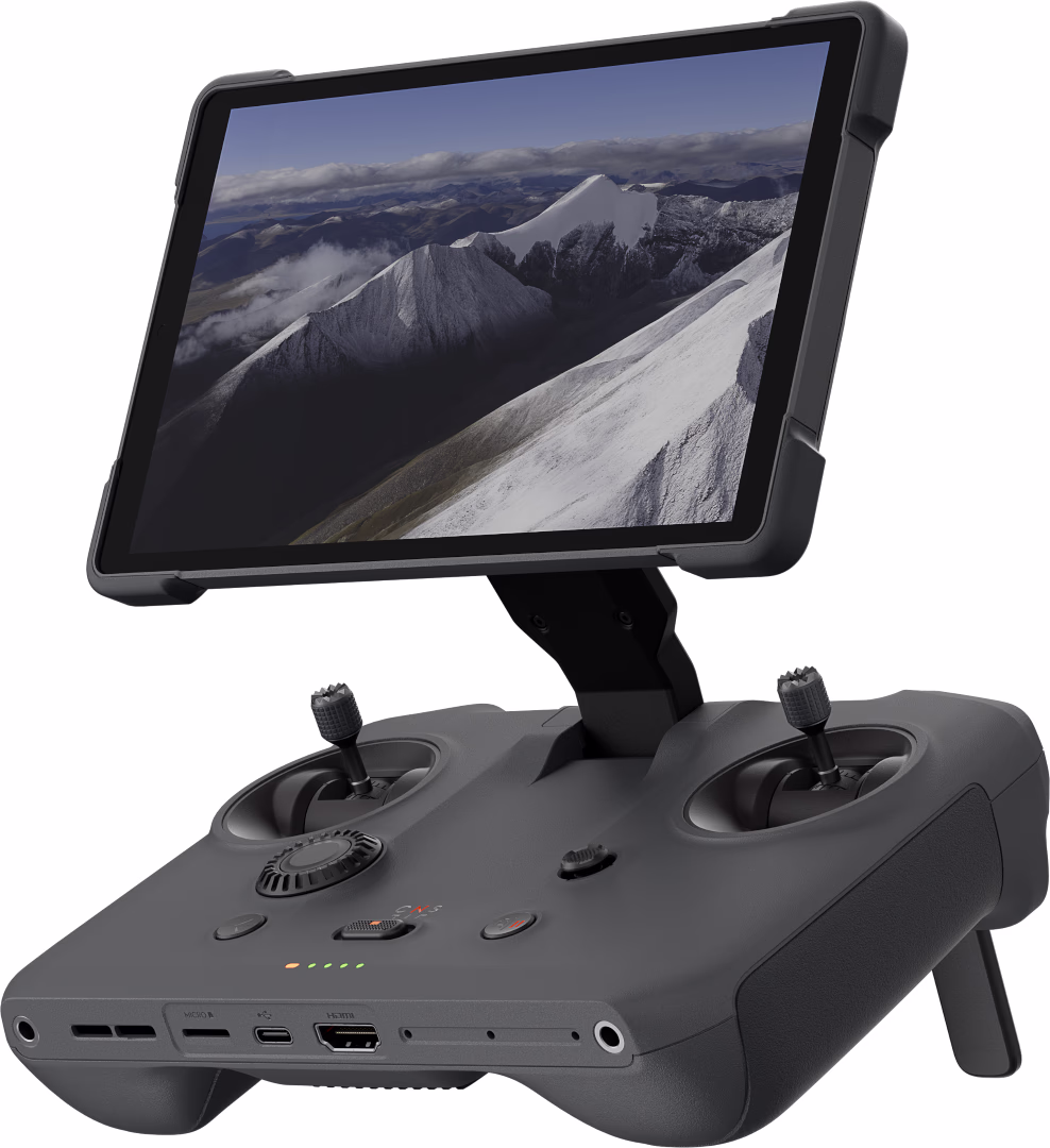 With the DJI RC Pro 2 Remote, you can view the footage you record with your drone on a large screen. The remote has a fold-out screen. That way, you can place it in the viewing angle you prefer. This also reduces the reflection of the sun, for example. The remote uses O3+ video transmission. his is an improved version of OcuSync, a technology many DJI drones have. In combination with the 4G network connection, you have a stable connection and fast communication with your drone. Stream your drone footage live on social media. You can download apps onto the remote, like Facebook and Instagram. You can download photos and videos with 80MB/s thanks to WiFi 6. With the outdoor mode, the screen automatically adjusts to the ambient light. That way, your screen is clearly visible during a sunny day.
