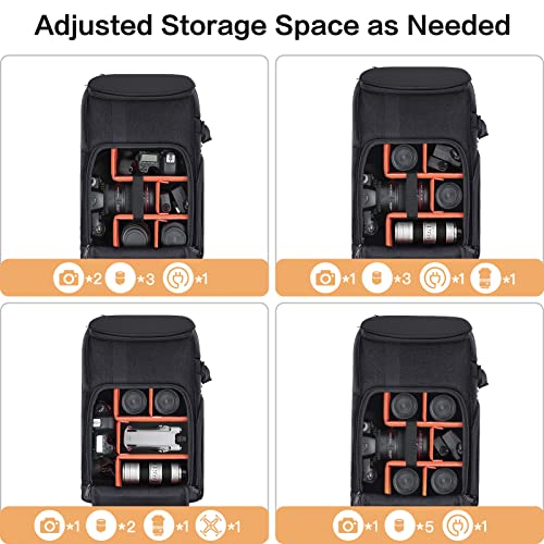 - Multifunctional pockets are featured for your SD cards, phone, wallet and other necessary needs for outgoing. Lightweight and durable. This photography bag is made of durable polyester fabric with zippers and reinforcement edge and bottom, perfectly used for outdoor travel, wedding, photography, vlog. Waterproof rain cover is included. Back trolley belt makes it convenient during the trip.