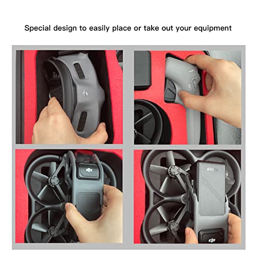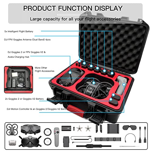 - 【Special Design】This DJI Avata Pro Carrying Case is specially designed for DJI Avata Pro-View Combo and accessories. The hard case can hold DJI Avata Drone * 1, DJI Motion Controller * 1, DJI Goggles 2 * 1, Flight Battery * 5, Goggles 2 Battery * 2, power adapter, cables and others DJI avata pro accessories, etc. Note: Original Avata battery charging hub does not support!