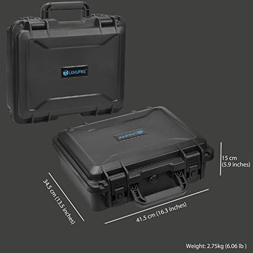 - 【Strong Protection】Waterproof and Dust Proof IP67 Certification. Weight: 2.75 kg (6.06 Ibs). External Dimensions (LxWxH): 16.3 x 13.5 x 5.9 inches / 41.5 x 34.5 x 15 cm. With two action latches. Keep the case securely closed using compressive force. Ideal for traveling or home storage. Suitable for outdoor environments such as deserts, beaches, rain forests, snow mountain, etc.